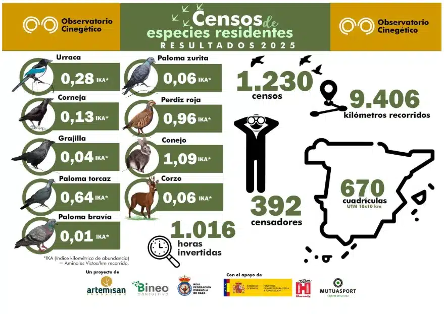 El Observatorio Cinegético es una iniciativa impulsada por la Fundación Artemisan, Bineo Consulting y la Real Federación Española de Caza, con la colaboración del Ministerio de Agricultura, Mutuasport y Hornady. Su objetivo es claro: recopilar datos sólidos y homogéneos sobre las poblaciones de fauna silvestre en nuestro país.