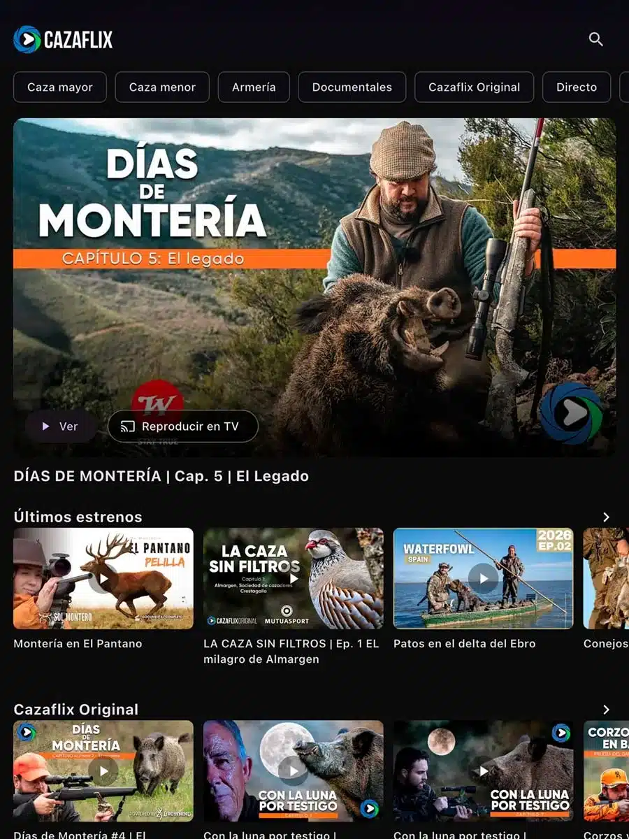 Además, el catálogo de contenidos sigue creciendo con vídeos de caza mayor, menor e internacional, documentales, pruebas de armas y producciones propias. Esta combinación de entretenimiento y actualidad convierte a Cazaflix en una herramienta útil tanto para el ocio como para estar al día, reforzando su papel dentro del ecosistema digital cinegético.