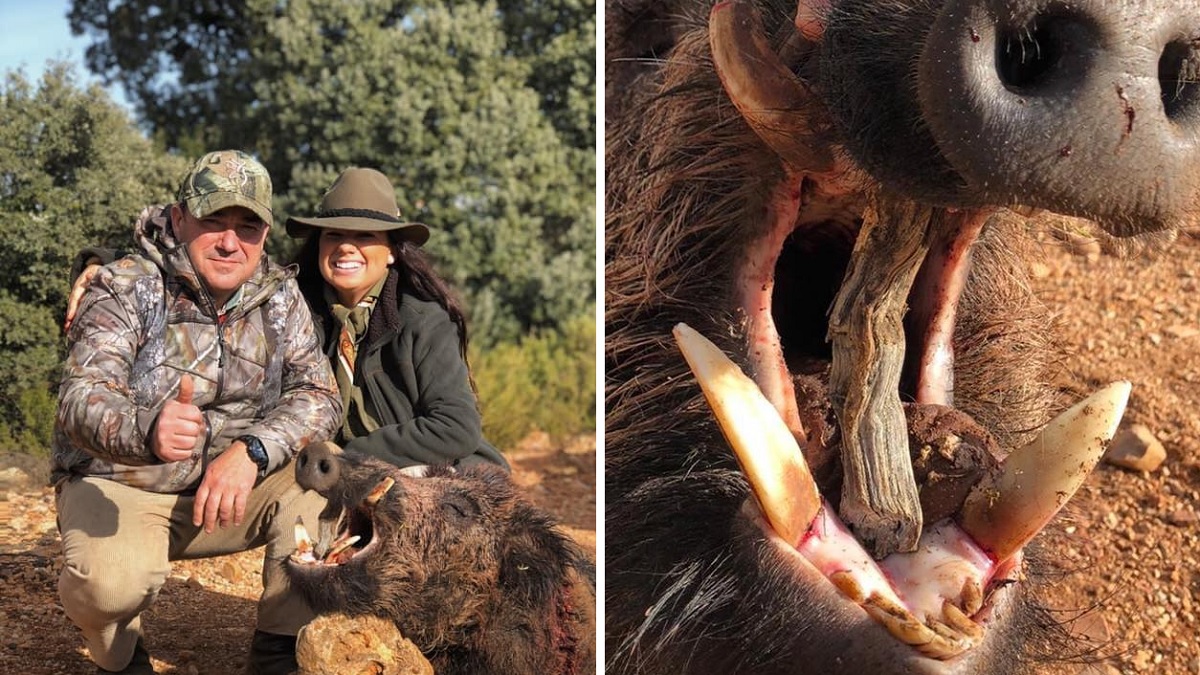 La joven cazadora María Palacios Cerceda y su padre abatieron el pasado 1 de febrero un tremendo y agresivo jabalí que había herido a varios perros y al que tuvieron que hacer frente a cuchillo.