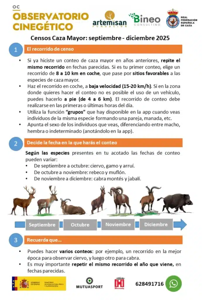 El mes de septiembre arranca con una de las iniciativas más relevantes para la gestión de la fauna en España: los censos de caza mayor del Observatorio Cinegético. Esta campaña, que se prolongará hasta diciembre, permitirá obtener información clave sobre la situación poblacional de distintas especies gracias a la participación directa de miles de cazadores que aportan sus observaciones de campo.