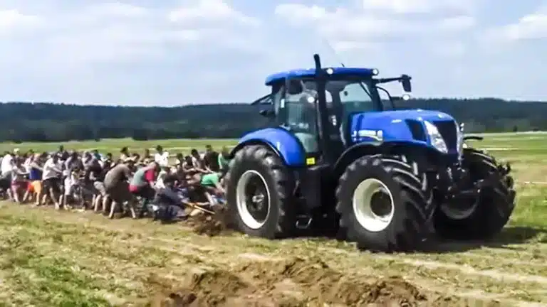 Los protagonistas de esta grabación ya han desbloqueado ese reto. ¿El oponente? Un tractor. Un centenar de personas han juntado sus fuerzas para comprobar si son capaces de superar a las de este vehículo.