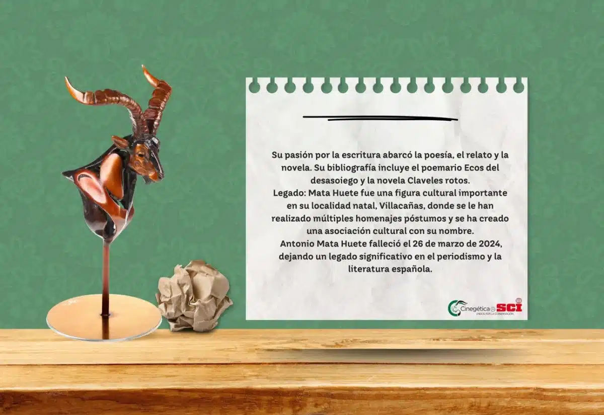 La entidad Cinegética-SCI ha puesto en marcha la convocatoria del II Certamen Literario “Antonio Mata Huete”, creado tras el fallecimiento en marzo de 2024 de este miembro destacado de la organización. El concurso busca mantener vivo su compromiso con la divulgación de los valores del campo y la vida silvestre, y refuerza la apuesta de la entidad por impulsar propuestas culturales ligadas al medio natural.