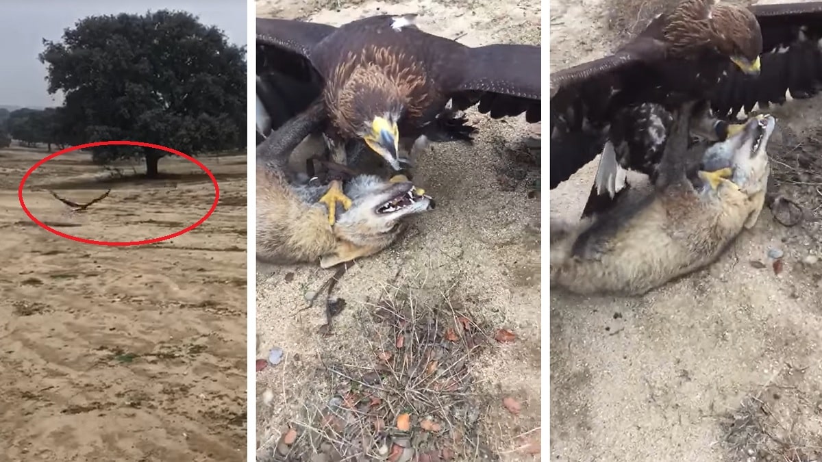 Las impactantes imágenes del momento en que el águila se lanza a por el raposo y lo atrapa con sus garras corren como la pólvora en las redes sociales.