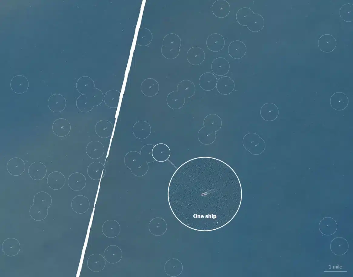 La investigación, publicada por The New York Times, explica cómo estas maniobras se habrían desarrollado prácticamente sin llamar la atención, pese a su tamaño. Y ahí está lo inquietante: no hablamos de unas decenas de embarcaciones, sino de formaciones capaces de coser el mar en una de las autopistas comerciales más transitadas del planeta.