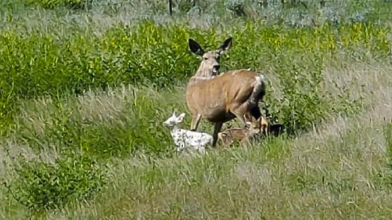 El hecho ha ocurrido en Montana, Estados Unidos, y ha sido noticia en medios locales como KTVQ, donde narran que los cérvidos fueron grabados en las cercanías de Miles City. La Asociación Nacional del Ciervo estadounidense declaró que las probabilidades de que una cierva dé a luz a un cervatillo albino es de 20.000 entre 1 y recuerdan que si algún viandante encuentra a una cría de ciervo sola, no la toque porque la madre está vigilando.