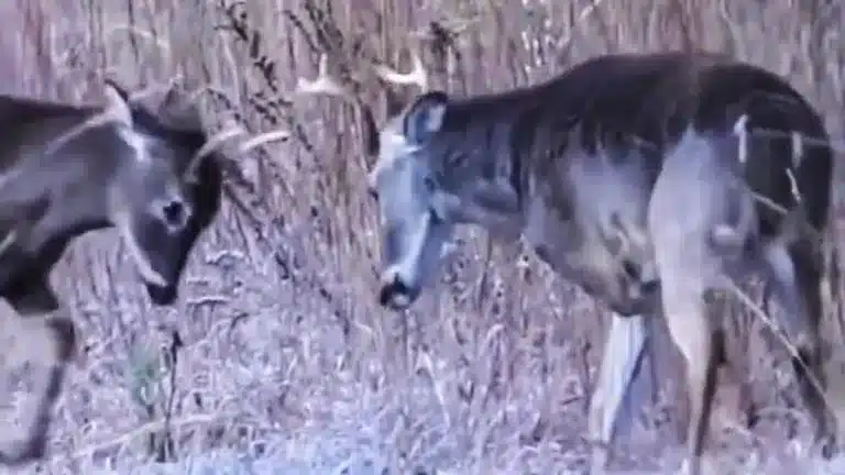 En el siguiente vídeo se puede ver cómo un joven ciervo al que le falta una de sus patas camina entre el pasto y desafía a otro macho que se acerca a unos metros de él. El animal de tres patas, al que le falta la delantera izquierda, no se deja intimidar por su rival y embiste con todas sus fuerzas. El otro cérvido, también le responde midiendo sus fuerzas y trata de imponerse.