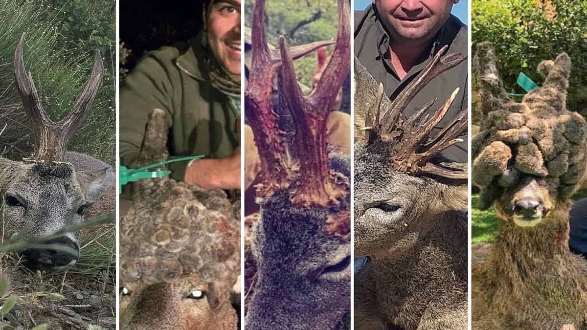 El vídeo este corzo con peluca comiendo en una siembra corrió como la pólvora por las redes sociales el año pasado. El animal, localizado en las cercanías de Burgos, fue sacrificado por agentes medioambientales de la Administración para evitar que provocara accidentes de tráfico, ya que la increíble malformación de su cuerna limitaba enormemente su capacidad de visión. Julián Burgos fue el elegido para preparar el trofeo en una vitrina de cristal, pues ha sido donado al Instituto Cardenal López de Mendoza de Burgos. El taxidermista aseguró que es la peluca más grande que ha visto en su vida: 30 centímetros de longitud y 57 de diámetro. También extrajeron los testículos del corzo, diminutos y atrofiados, para su posterior análisis y estudio.