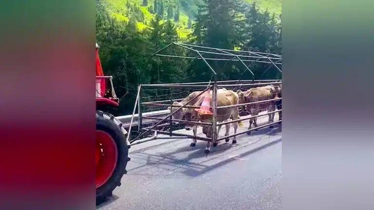 El primer caso que conocemos es el de un ganadero que quería idear un modo de transportar a sus vacas por carretera. De esta forma, construyó un sistema formado por una estructura de barras de hierro soldadas en las que, en su interior, van los animales.