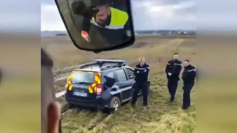 Un vídeo publicado en la red social TikTok por el perfil SW Noticias ha captado un momento de solidaridad entre agricultores y policías en medio de las revueltas que se están llevando a cabo en Francia por la situación del sector agrario. En las imágenes se puede ver cómo unos agricultores ayudan a sacar del barro a un coche de la Policía que, según el citado medio, les perseguía durante una protesta.