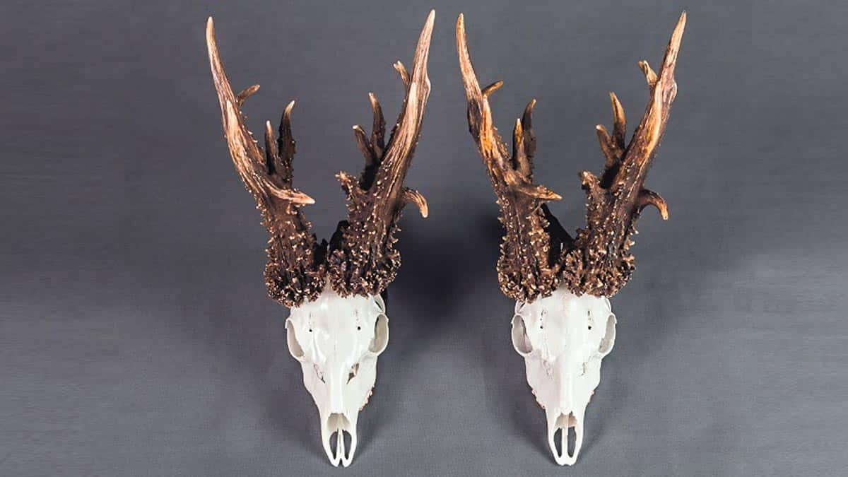 Esta malformación se aprecia al limpiar el cráneo. Es una rareza que sólo he visto en corzos, y normalmente se desarrollan sin mayor problema, ya que no les impide aparearse y alimentarse. Además, nos encontramos frente a ejemplares que son perfectamente medibles, puesto que no afecta ni al peso del cráneo ni a la formación de la cuerna.