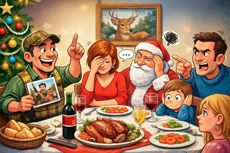 La escena se repite cada año. Mesa puesta, vino servido, el marisco ya tiembla en la fuente y alguien —normalmente el cuñado— pregunta inocentemente: «¿Y tú sigues yendo al monte?». Silencio. Aquí empieza el juego. Porque hablar de caza en Navidad requiere más temple que un rececho con el viento en la nuca.