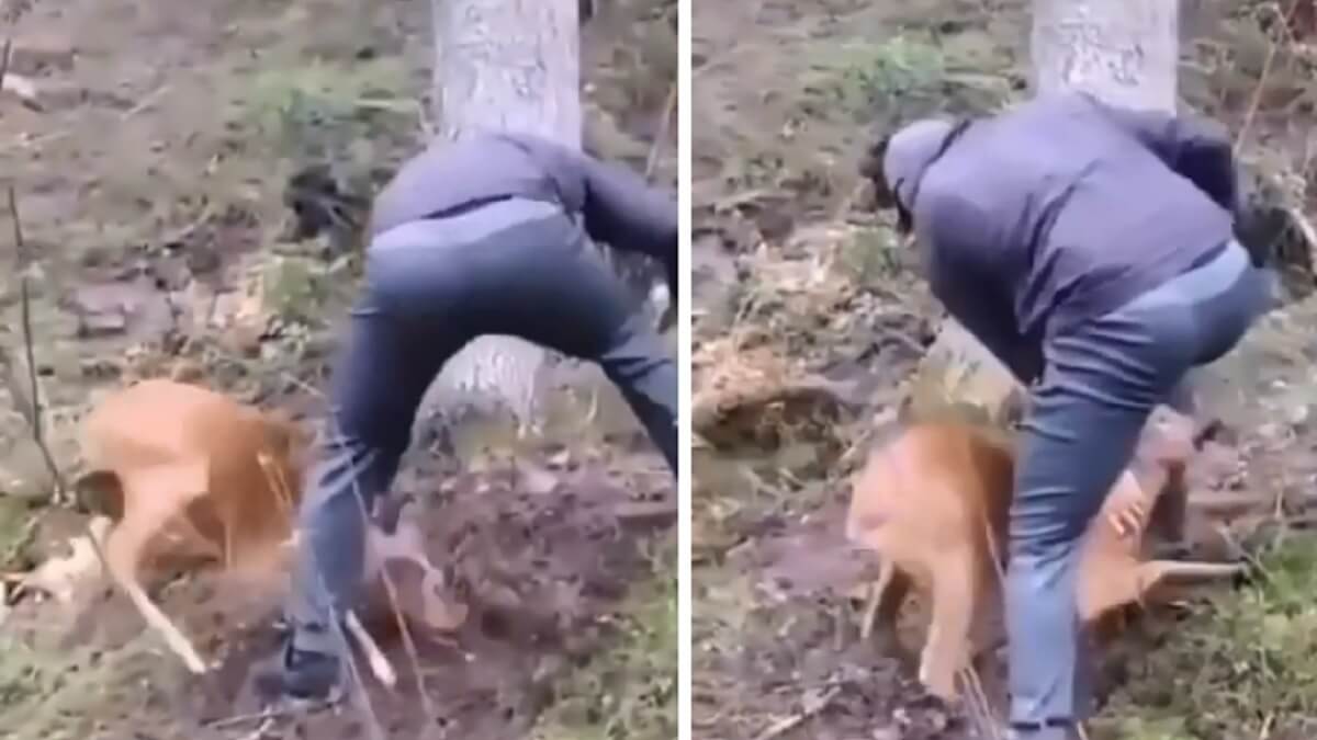 En la filmación, que está grabada en un lugar que no hemos podido averiguar aún desde Jara y Sedal, se ve cómo un senderista huye de un pequeño corzo que lo embiste una y otra vez en medio del bosque. Mientras, un compañero graba la escena atónito, pero tampoco acude en ayuda de su compañero.