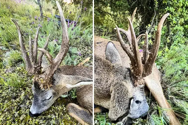 «Cazamos jabalí también. Corzas grandes tengo alguno más, pero este es el mejor por lo raro y a la vez es grande», asegura Fernando, que no olvida otra captura especial: el corzo peluca que abatió el año pasado, también muy poco habitual. Dos temporadas consecutivas con dos corzos excepcionales, cada uno en su categoría, que confirman su buen ojo y experiencia.