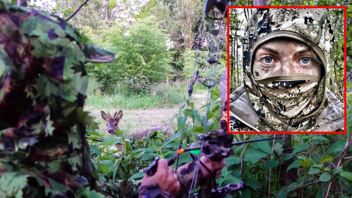 El vídeo que te mostramos más abajo ha sido grabado esta misma semana y muestra cómo Stefania se encuentra cazando corzos desde un puesto de espera, perfectamente mimetizada, cuando un corzo nuevo entra en escena.