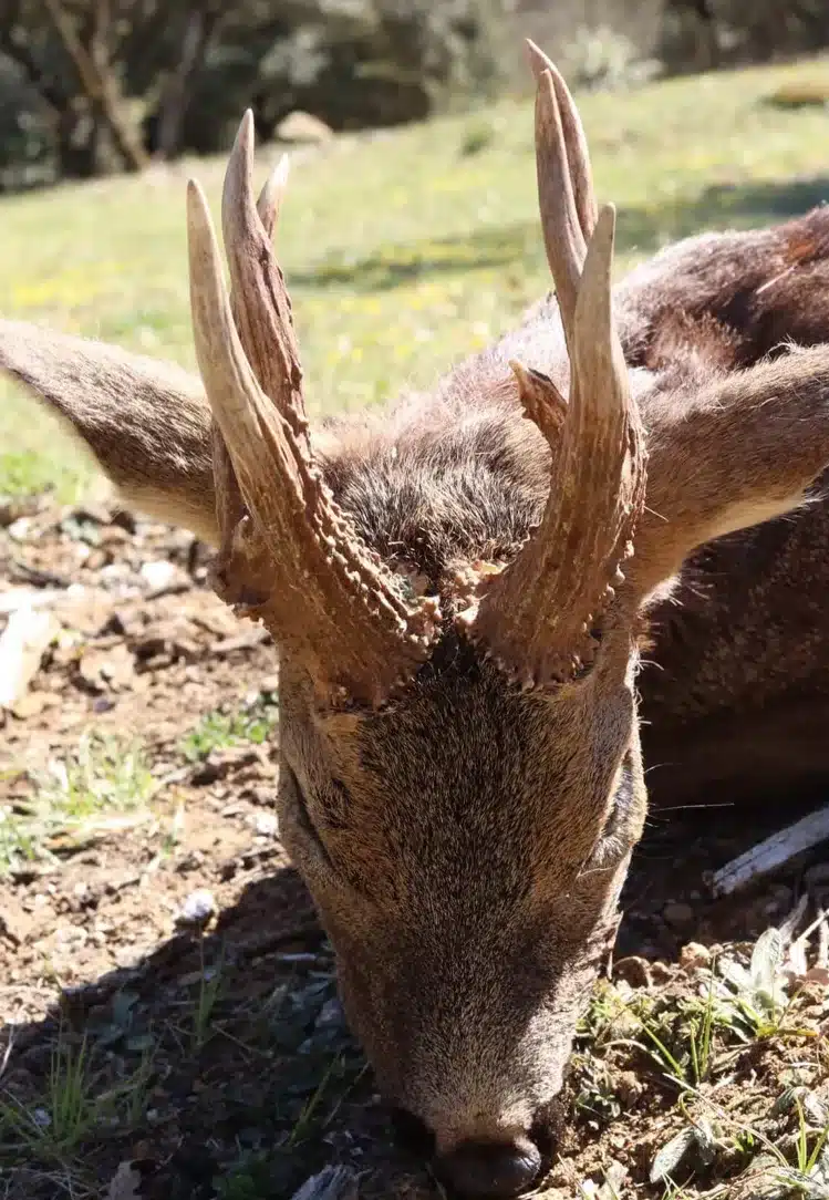 Este detalle rompe completamente con la estructura típica del corzo, que suele presentar dos luchaderas, dos contraluchaderas y las puntas principales orientadas hacia arriba o ligeramente abiertas. En este caso, la cuerna ofrece una estética distinta, casi desconcertante, que le da un aspecto muy característico.