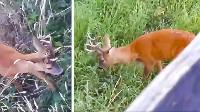 Las imágenes de un corzo con un espectacular trofeo de nueve puntas que se acerca a un metro de este cazador no ha dejado indiferente a los internautas.