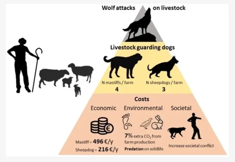 A ello se suma el impacto ambiental: la huella de carbono asociada al mantenimiento de estos perros alcanza el 7% de las emisiones totales de una granja. Es decir, el precio de la convivencia con el lobo no solo se mide en términos económicos, sino también en emisiones.