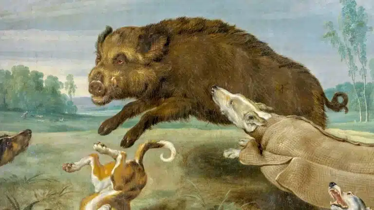 Y una de ellas podemos encontrarla en el Museo del Prado. Este templo de la historia pictórica esconde una obra que, para quien no sea cazador, puede ser un trabajo más del pintor Frans Snyders, de Amberes. Nos estamos refiriendo al cuadro titulado La caza del jabalí, que fue pintado en 1636 y que muestra una escena de montería en la que varios perros persiguen a un enorme macareno. De ellos, dos yacen en el suelo heridos por los colmillos del animal salvaje, mientras que varios más corren tras él.