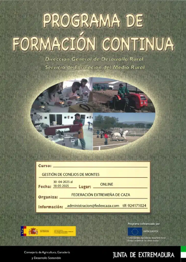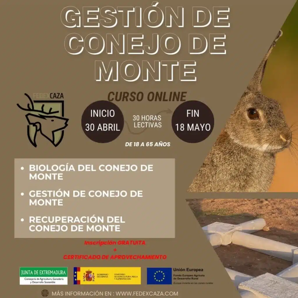 La Federación Extremeña de Caza ha puesto en marcha un nuevo curso online gratuito titulado Gestión del Conejo de Monte, que comenzará el próximo 30 de abril. Con una duración total de 30 horas, está especialmente dirigido a personas con interés en la gestión responsable de esta especie clave para el equilibrio de muchos ecosistemas ibéricos.