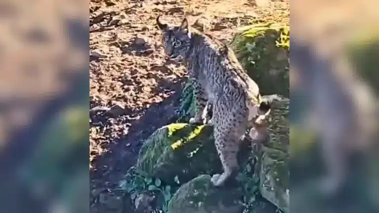 Lo primero que vemos es cómo los dos linces entran por una de las portilla de la finca sin pensárselo dos veces y con total seguridad de lo que están haciendo. Una vez dentro, ambos animales comienzan a caminar por ella, campando a sus anchas por cada rincón que encuentran durante su tranquilo paseo.
