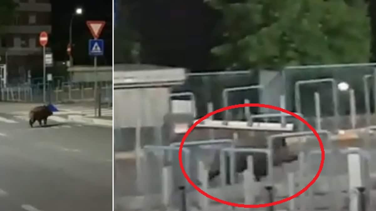 El animal, de un enorme volumen, pasa las barreras y accede al parking del centro sanitario de la ciudad italiana de Terni.