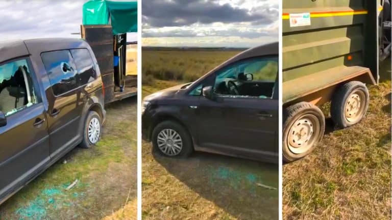 El vídeo que mostramos a continuación habla por sí sola: el coche de un juez que participaba en un campeonato de galgos celebrado el pasado fin de semana en la provincia de Albacete completamente destrozado. Una de las ventanas delanteras rota, las ruedas pinchadas –incluso las del ban para los caballos- y una imagen totalmente contraria de lo que debería ser el mundo de la caza.