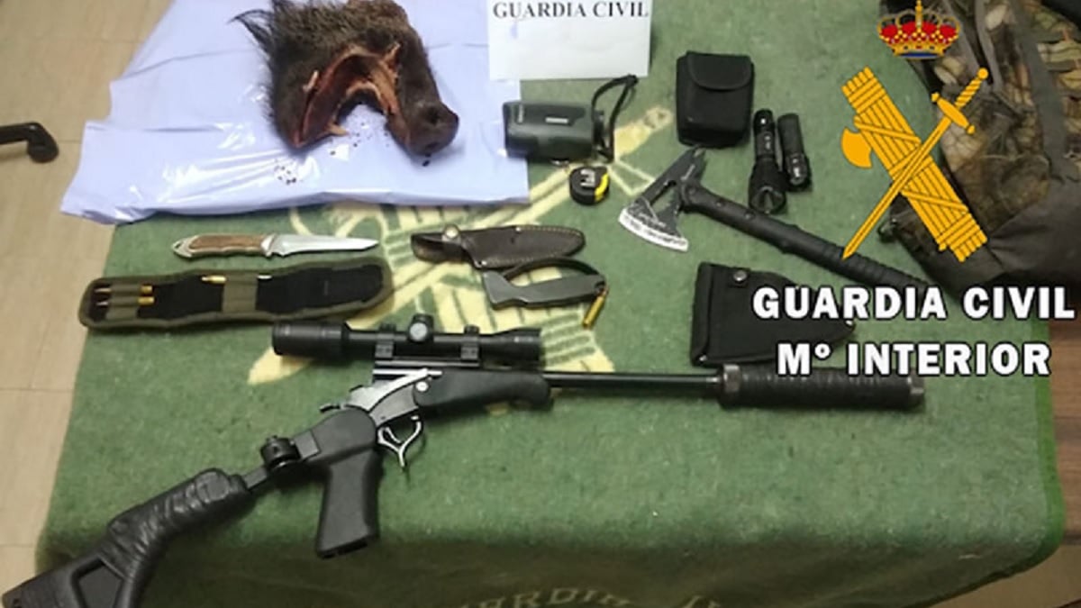 Comprobaron que un perro que llevaban carecía de documentación y que en la parte trasera había una mochila con machetes, hachas y en el interior de una bolsa de plástico con restos de sangre reciente, otra bolsa en la que localizaron el hocico de un jabalí.