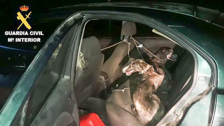 Uno de ellos, al percatarse de la presencia de la Guardia Civil, dejó caer las llaves de un vehículo en la carretera. Una vez localizado este turismo, con apoyo de otra patrulla, al examinar el interior, localizaron tres galgos.