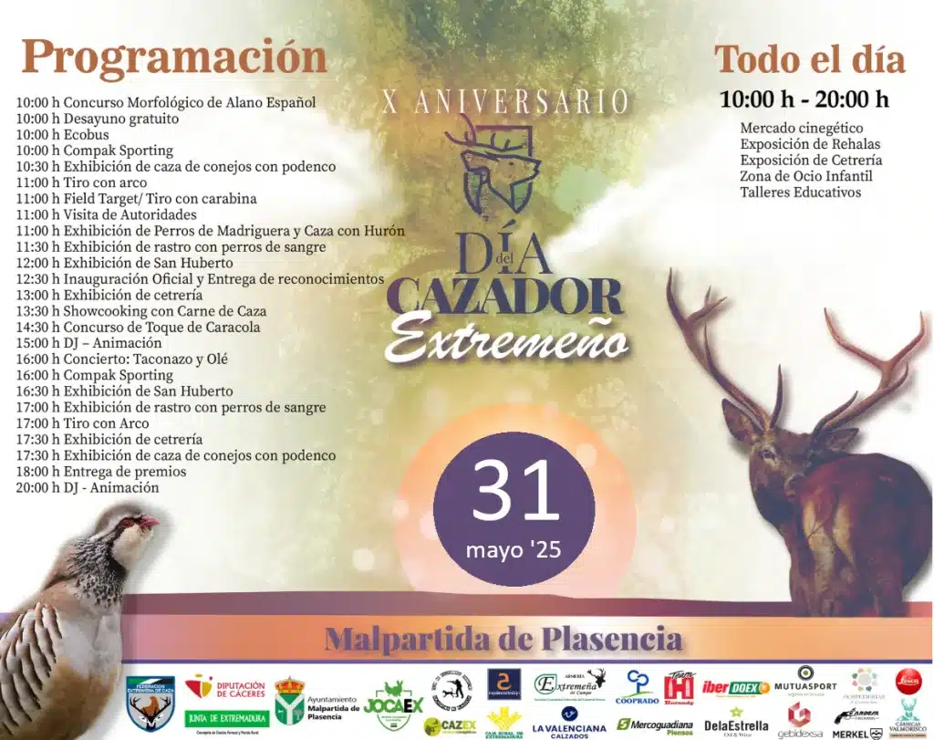 El respaldo institucional es otra de las claves del evento. Además de la implicación del Ayuntamiento de Malpartida de Plasencia y la Sociedad Local de Cazadores, el Día del Cazador cuenta con el apoyo de la Diputación de Cáceres, la Junta de Extremadura y un buen número de empresas colaboradoras, que hacen posible esta gran cita.