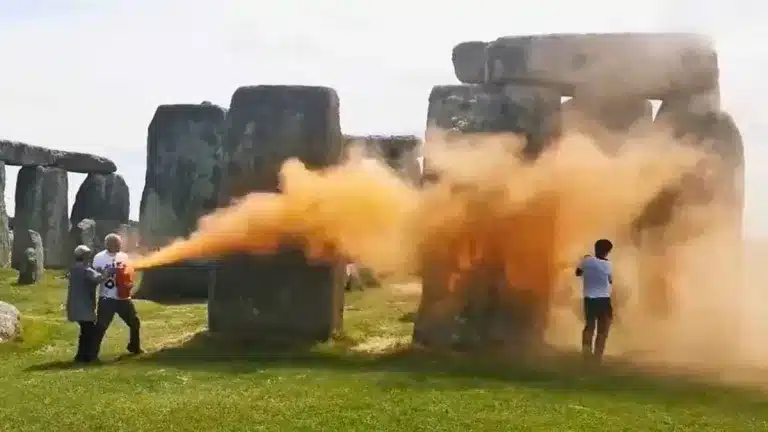 Dos ecoterroristas, parte del grupo Just Stop Oil, han sido detenidos por lanzar pintura naranja contra el popular monumento de Stonehenge en Wiltshire, ubicado en el suroeste de Inglaterra.