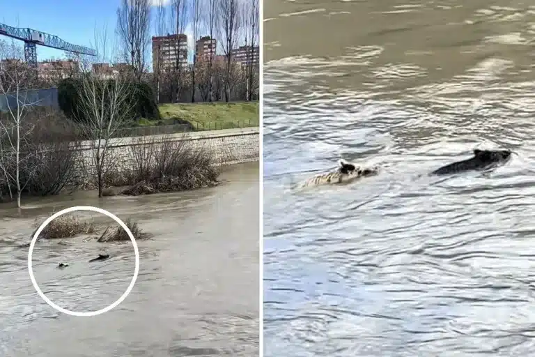 El paso de la borrasca Leonardo por Madrid ha dejado lluvias persistentes y un Manzanares muy distinto al habitual, con un caudal más propio de épocas pasadas que del río domesticado que cruza la capital. En ese escenario, una escena inesperada ha sorprendido a vecinos y curiosos: dos jabalíes nadando a plena luz del día en el centro de la ciudad.