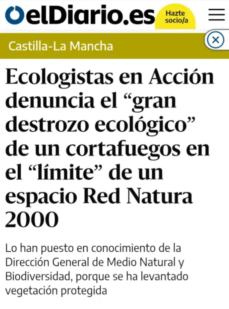Hace apenas unos meses, Ecologistas en Acción elevó una denuncia ante la Dirección General de Medio Natural y Biodiversidad del Gobierno regional contra la apertura de un cortafuegos en Fuente el Fresno, Ciudad Real. La organización alegaba que se había producido un «gran destrozo ecológico» al eliminarse vegetación protegida en el límite de un espacio Red Natura 2000. Ahora, la misma entidad ha sorprendido con un mensaje en sus redes sociales en el que reclama «medidas urgentes, amplias, efectivas y duraderas para hacer frente a los incendios forestales».