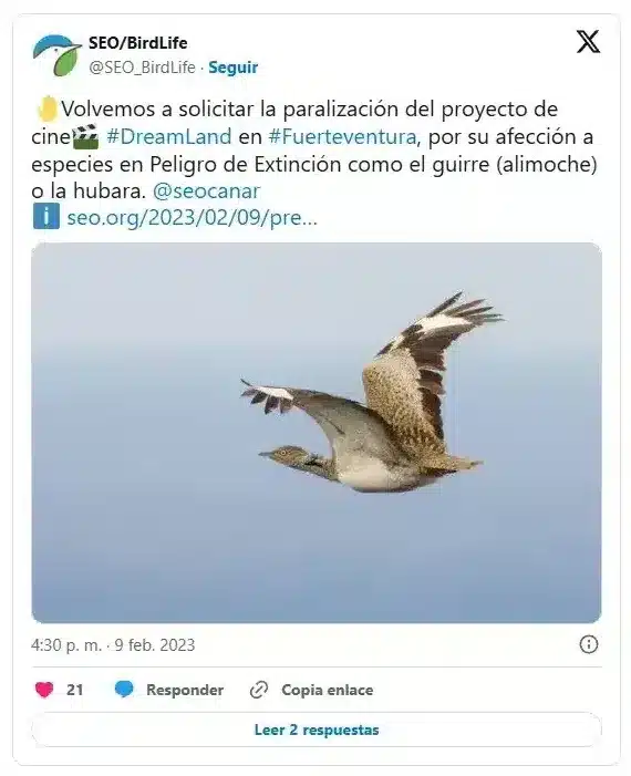 Ese mismo día, mientras se aprobaba en el Congreso esta normativa, SEO/BirdLife optaba por centrar su atención en redes sociales en un proyecto cinematográfico que, según afirmaban, ponía en riesgo aves como el alimoche o la hubara. Su silencio ante la nueva ley contrasta con la habitual contundencia que emplean frente a otras actividades legales, como la caza sostenible de especies como la tórtola o la codorniz.