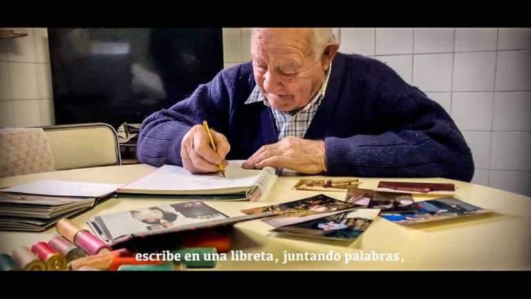 Gracias, risas y esfuerzo que no quiere olvidar. Nadie escucha sus palabras. Historias, viejas historias que a sus hijos y a sus nietos no parecen interesarles. Y los amigos ya están lejos: ilusiones, dichas y esfuerzos que no se compartirán. Y sin pretenderlo, aún los ve en el espejo los rostros de los jóvenes, no son tan viejos. Y escucha sus voces: vámonos de caza, agarra la escopeta y acude presto al zaguán.