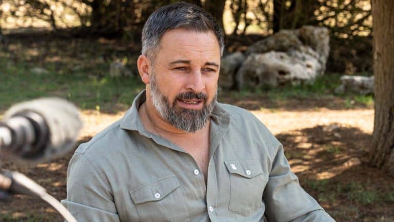 El mercurio marca los 36 grados cuando una furgoneta negra se aproxima por el camino levantando una nube de polvo denso. Son las 11 de la mañana: puntual como un reloj. Al llegar a nuestra altura saca su brazo por la ventanilla y estrecha mi mano. Rápidamente buscamos una sombra para sentarnos y grabar la entrevista antes de que el público lo vea. Antes de que un aluvión de peticiones de selfis y apretones de manos engulla a uno de los hombres más buscados del momento: Santiago Abascal.