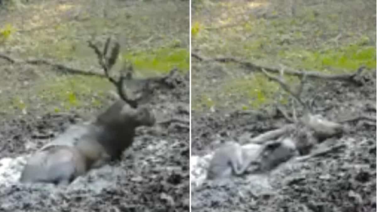 Los cazadores no se ponen de acuerdo sobre la causa que ha podido llevar a este ciervo a revolcarse así en el barro. Y tú, ¿qué crees?
