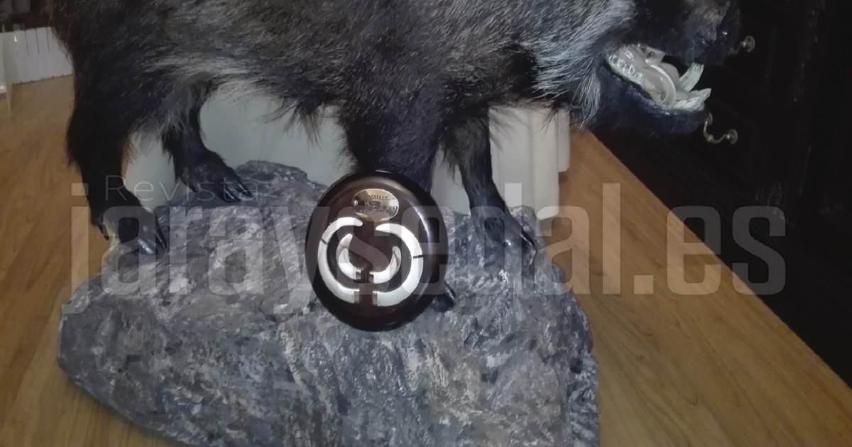 El jabalí, que no pesaba más de veinte kilos, presentaba unas defensas inusuales para el tamaño del cuerpo. El trofeo arrojó unas medidas de 14 centímetros de longitud de colmillos y 3,5 de amoladeras.