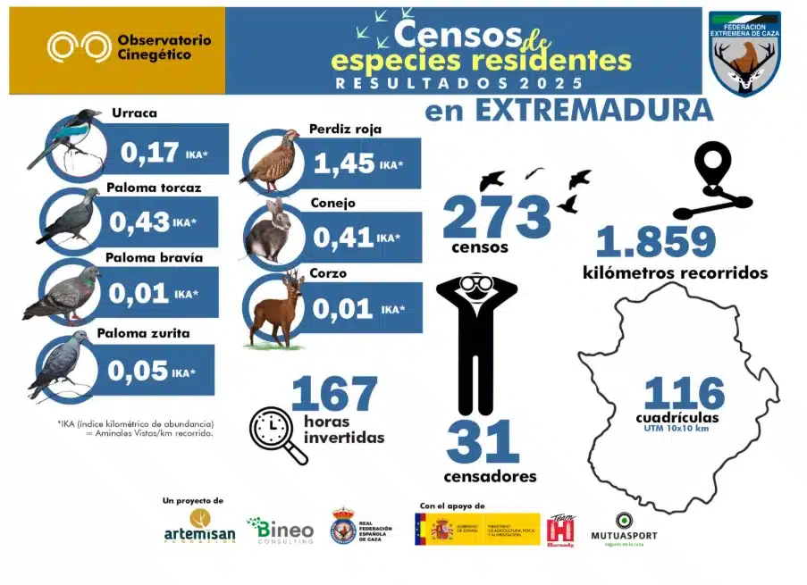Extremadura ha vuelto a destacar como referente nacional en la monitorización de fauna silvestre, consolidando su liderazgo en los censos de especies cinegéticas residentes. Esta posición de privilegio es fruto del compromiso y la coordinación entre la Federación Extremeña de Caza (FEDEXCAZA), los cazadores federados, técnicos especializados y la Junta de Extremadura.