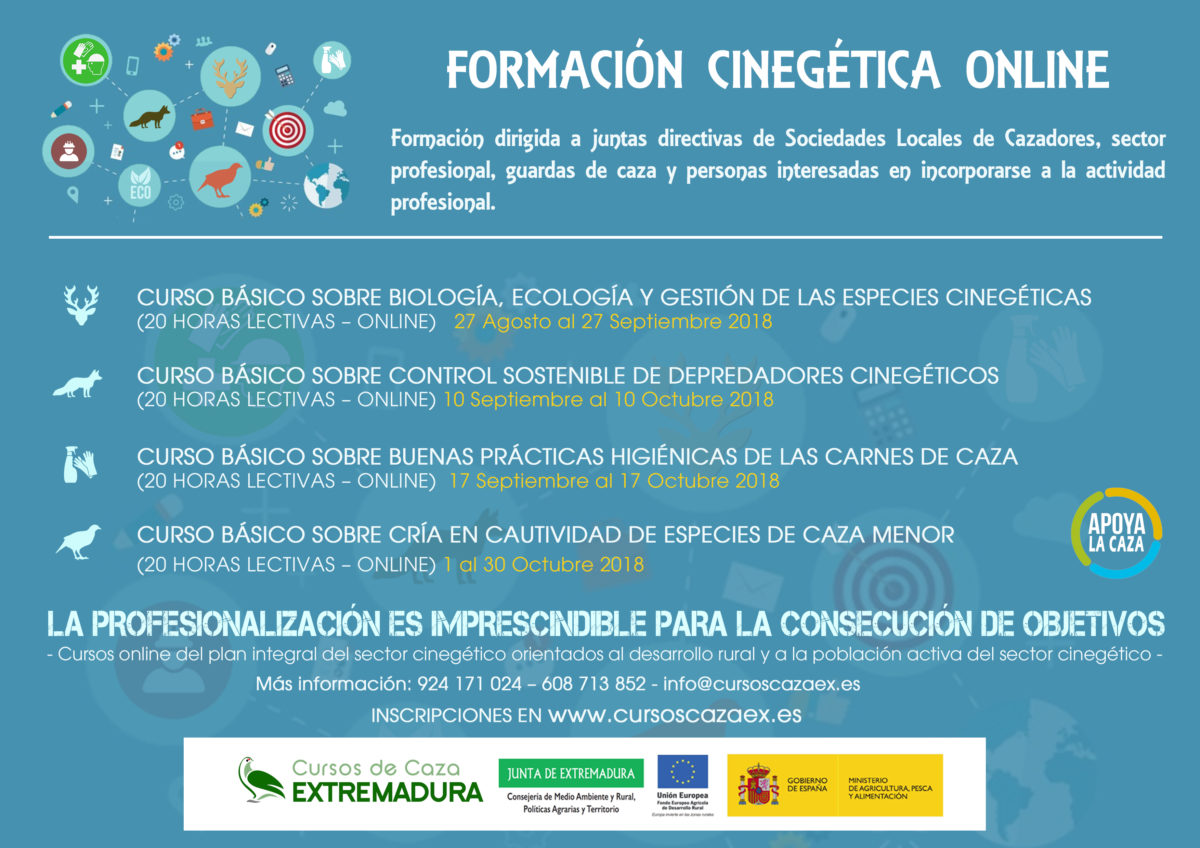 - Curso Básico sobre Biología, Ecología y Gestión de las Especies Cinegéticas (27 de agosto – 27 de septiembre de 2018).