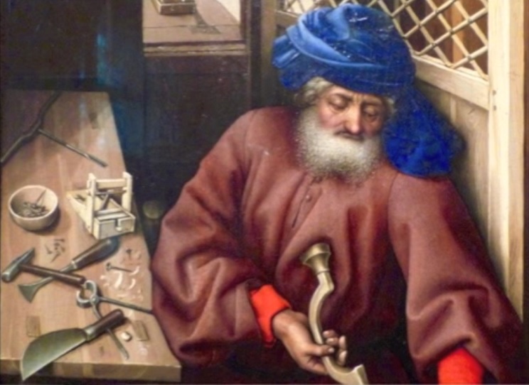 Se trata de una trampa que data de 1427 retratada en una el Tríptico de la Anunciación de Robert Campin. En uno de los trípticos del artista flamenco puede verse sobre el banco de trabajo de José, esposo de María y padre de Jesús. Sin adentrarnos demasiado en la iconografía de la pintura, diremos que algunos consideran que el engaño para ratones es un símbolo de la cruz. La cruz se considera una trampa para el diablo, con la carne de Cristo como cebo.
