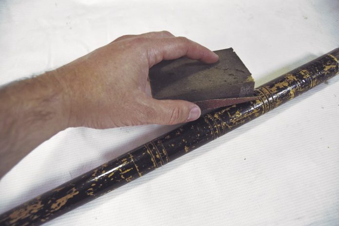 Hazlo con ayuda de una lija de grano del número 80. Si el taco de billar contara con varias capas utiliza gel decapante para maderas, te facilitará el trabajo: aplica una capa generosa, espera media hora y retíralo con una espátula. Cuando no queden restos podrás pasar al siguiente paso.