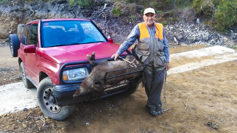 Un abuelo de 81 años caza un jabalí alunado cuyo colmillo se estaba clavando en su jeta