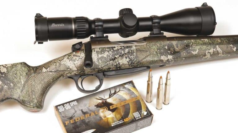 Además, el cañón y la acción, que prácticamente es abierta y por tanto se puede introducir cómodamente a mano un cartucho en la recámara, están protegidos por Cerakote que es un recubrimiento cerámico muy resistente a los arañazos y a la corrosión porque impermeabiliza el acero y lo protege de la lluvia o la nieve. En concreto, estas piezas están tratadas con Cerakote Midnight Bronze, que tiene un color bronce oscuro que pega bien con el de la caja. El cañón mide 56 centímetros en calibres estándar y 61 en .300 Win. Mag y carece de miras –en otras versiones se puede conseguir con o sin alza y punto–.