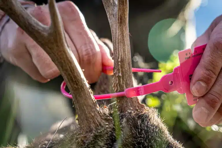 Los precintos, son etiquetas de plástico identificativos que se entregan junto a los permisos oficiales. Incorporan una brida diseñada para ser de un solo uso y deben colocarse de forma inmediata en el animal abatido, normalmente en una pata o en la cuerna, antes de su transporte. Su número coincide exactamente con el de las piezas autorizadas.