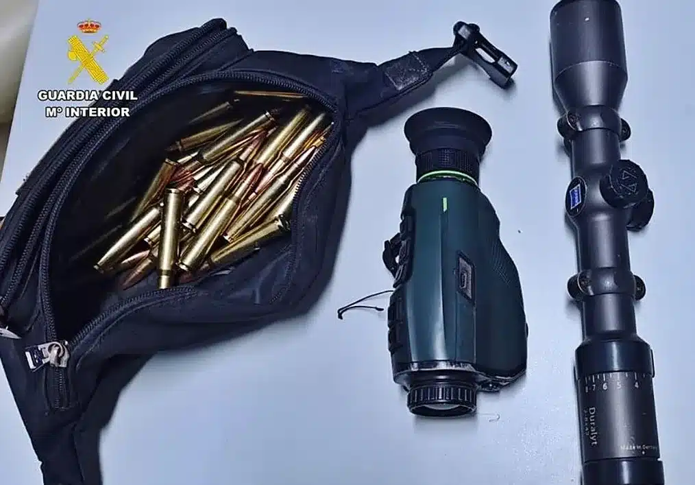 En el interior del vehículo también se encontraron diversos elementos, como un visor, un monocular térmico, linternas y abundante cartuchería metálica, que, según los investigadores, habrían sido utilizados para el abatimiento ilegal de animales. Además, en el maletero del coche los agentes detectaron restos de sangre fresca, lo que indicaría que el animal había sido abatido recientemente y que los ocupantes intentaron deshacerse de él durante la huida para evitar ser incriminados.
