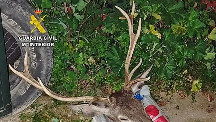 Tras detener el vehículo, los agentes inspeccionaron la zona por la que había pasado el coche. En la cuneta localizaron un rifle con la numeración de serie borrada de forma intencionada, así como la cabeza de un ciervo, que presuntamente habría sido abatido de manera ilegal. El hallazgo confirmó las sospechas iniciales y reforzó la hipótesis de que los tres hombres estaban implicados en un episodio de abatimiento furtivo de fauna dentro del coto.