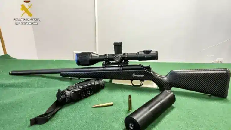 Agentes del instituto armado que patrullaban la zona en horario nocturno sorprendieron a un turismo circulando de manera errática y a escasa velocidad. Cuando fue interceptado, el conductor, muy nervioso, manifestó a los agentes que su perro se había perdido y que lo estaba buscando. Entonces, los agentes localizaron a otro individuo recostado en los asientos traseros, tapado con una manta y con un rifle del calibre .270 Winchester, con munición y listo para disparar. Además, tenía acoplado un visor térmico -cuyo uso es legal solo en algunas autonomías españolas- y un silenciador.
