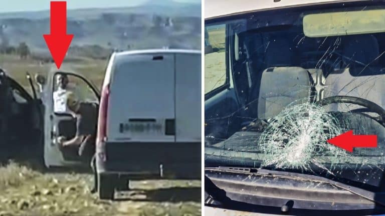 «Corre, corre, ay, ay. Bájate», grita una conductora que va tras el vehículo de otro cazador que intenta parar a los furtivos. Éstos se arman con piedras y amenazan con tirárselas. Aunque finalmente no lo hacen contra el hombre, sí alcanzan la luna de la furgoneta del cazador que les perseguía.