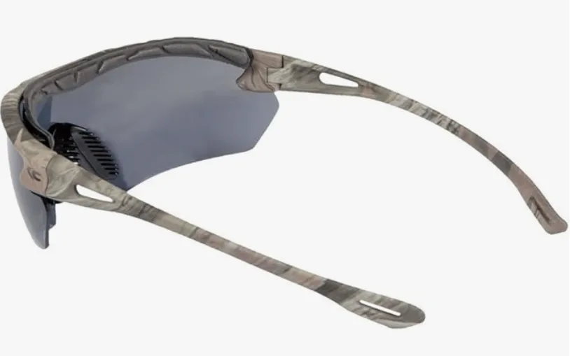 El modelo destaca por su campo de visión amplio y sin obstrucciones, un factor clave en modalidades como la caza menor o el tiro al plato. El marco y las patillas están fabricados en policarbonato con acabado de camuflaje, lo que les otorga un aspecto discreto y resistente. Las lentes, de color gris y con protección UV 400, incorporan un tratamiento antiarañazos y antivaho que garantiza una visibilidad óptima incluso en condiciones de humedad o cambios bruscos de temperatura.