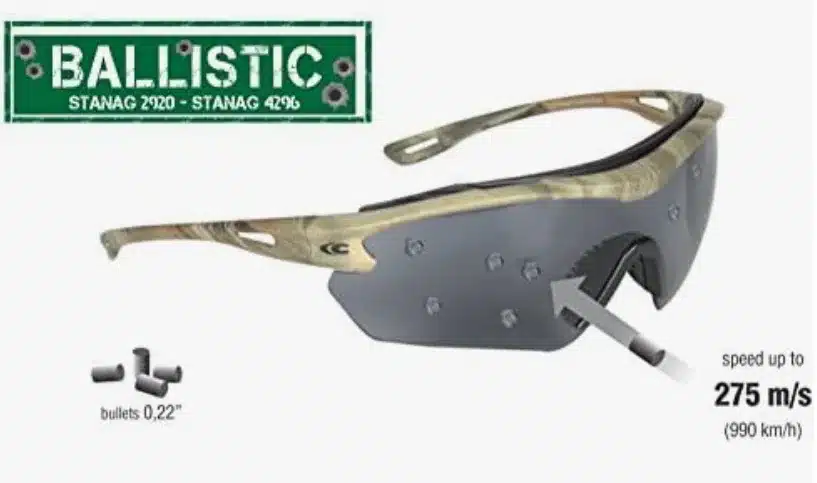Fabricadas por la reconocida marca italiana COFRA, estas gafas han sido diseñadas bajo los estándares STANAG 2920 y 4296, normas militares de la OTAN que certifican su resistencia ante impactos balísticos de calibre 22 y velocidades de hasta 275 m/s. Su estructura combina ligereza, comodidad y robustez, con un peso de apenas 33 gramos, ideal para largas jornadas de caza o tiro deportivo.